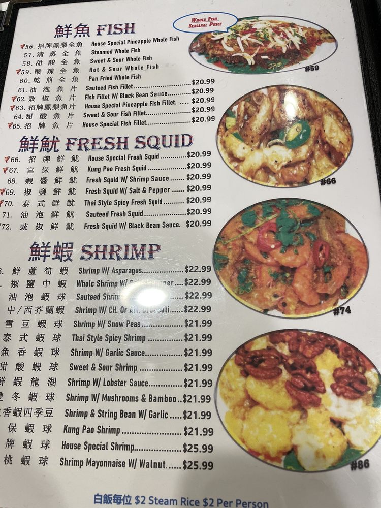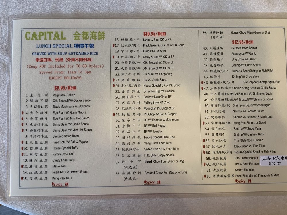 Capital Seafood Restaurant Menu